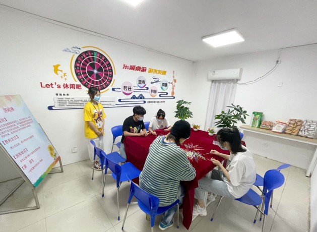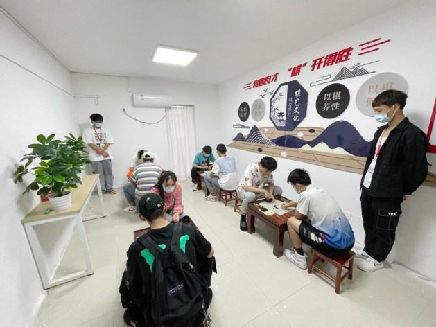 首先走进“棋妙无穷”活动室,映入眼帘的便是座无虚席的棋桌。不需要工作人员做过多的规则讲解,同学们便已拉上自己的好友坐下开始一场精彩的较量,五子连珠即为胜利,清脆的落子声和开心的谈笑声无一不宣示着大家的欢乐,而棋盘里的胜负仿佛已不那么重要,重要的是童趣欢乐在身旁。