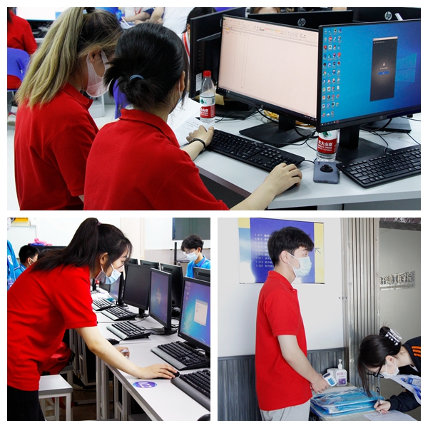 当天,在比赛现场,参赛选手们紧盯屏幕,左手快速敲击键盘,右手熟练操作鼠标,运用平面设计软件制作给定项目的网站LOGO设计、网站主页设计和网站主页移动端适配设计等,比赛紧张而有序。