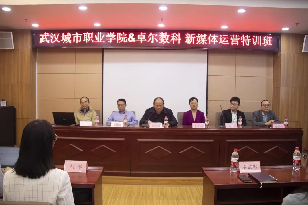 秋风送爽,在同学们的期盼下,卓尔控股有限公司旗下的卓尔数字传媒科技有限公司与武汉城市职业学院合作成立的新媒体运营培训班于10月14日上午在行政楼1-317会议室正式举办了开班仪式!出席会议的有我校段永发副校长、教务处向健极处长、招就处吴先华处长、计信学院吴丰盛院长、计信学院党总支肖静书记、计信学院胡文鹏副院长、数媒教研室主任鲁丽彬、企业代表有卓尔数科CHO屠俊先生、资深人力资源专家赵保松先生、高级人力资源经理夏婧女士、高级培训经理刘攀女士、高级招聘经理谈圆女士以及培训班全体学员。