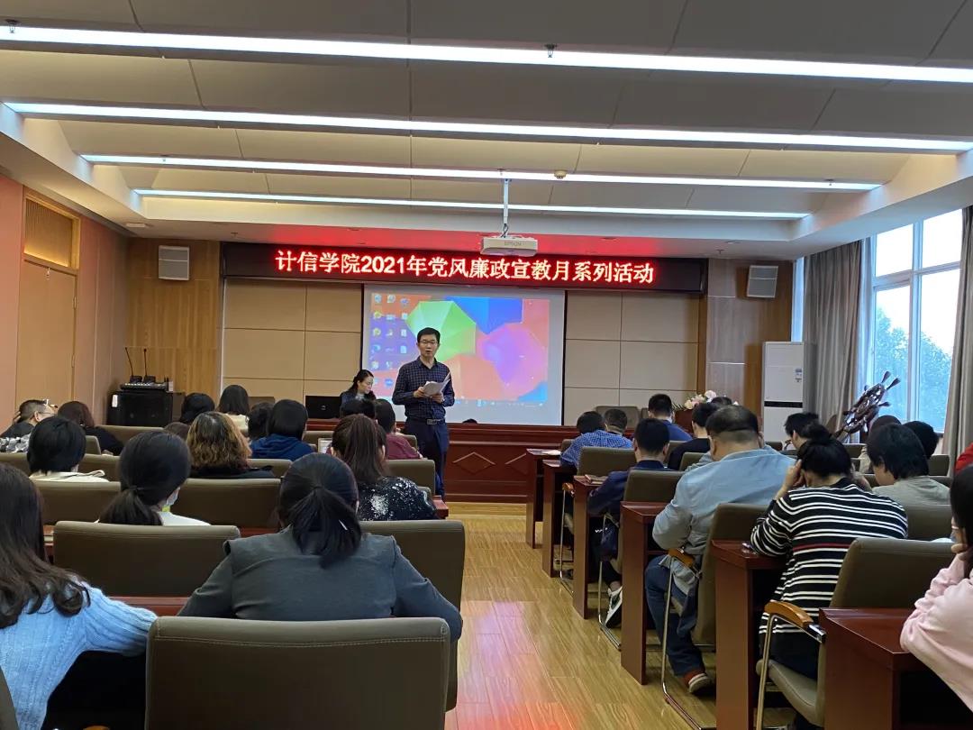 根据中共武汉城市职业学院委员会关于印发《2021年党风廉政建设宣传教育月活动方案》的通知,结合计算机与电子信息工程学院实际情况,2021年10月14日中午,在1-317会议室召开党风廉政建设专题会议。学院全体教职工参加,会议由党总支书记肖静主持。