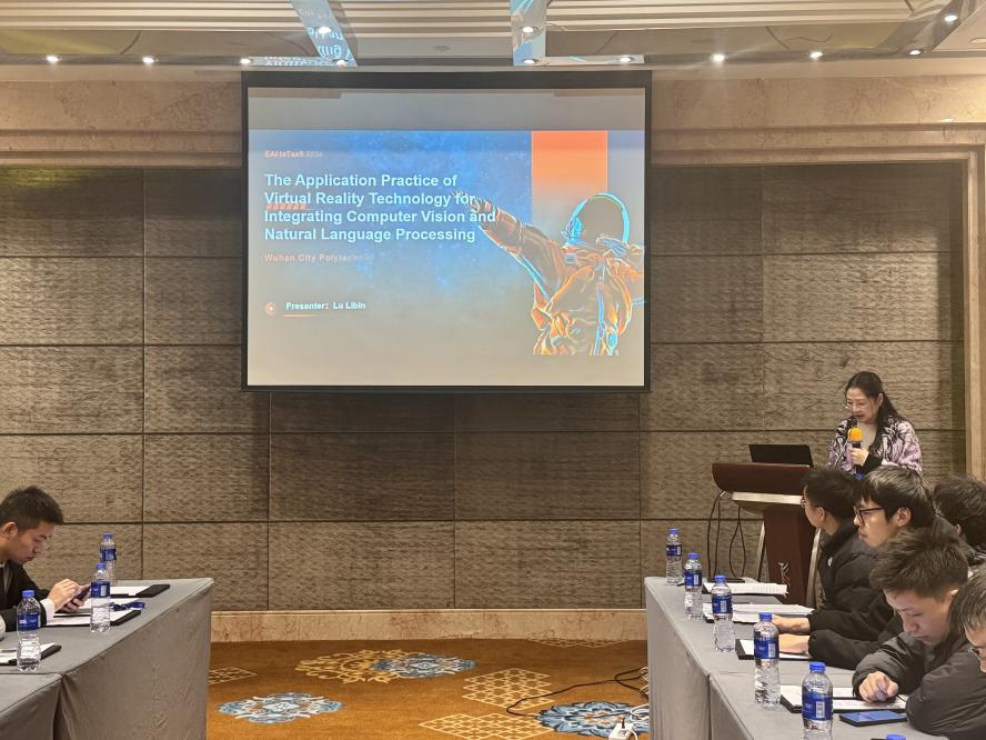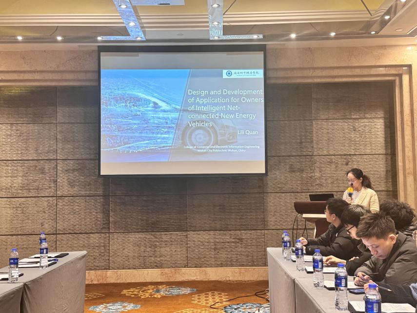学院教师鲁丽彬、全丽莉分别以“Application Practice of Virtual Reality Technology for Integrating Computer Vision and Natural Language Processing”和“Design and Development of Application for Owners of Intelligent Net-connected New Energy Vehicles”为题,在会议上进行了英文汇报。