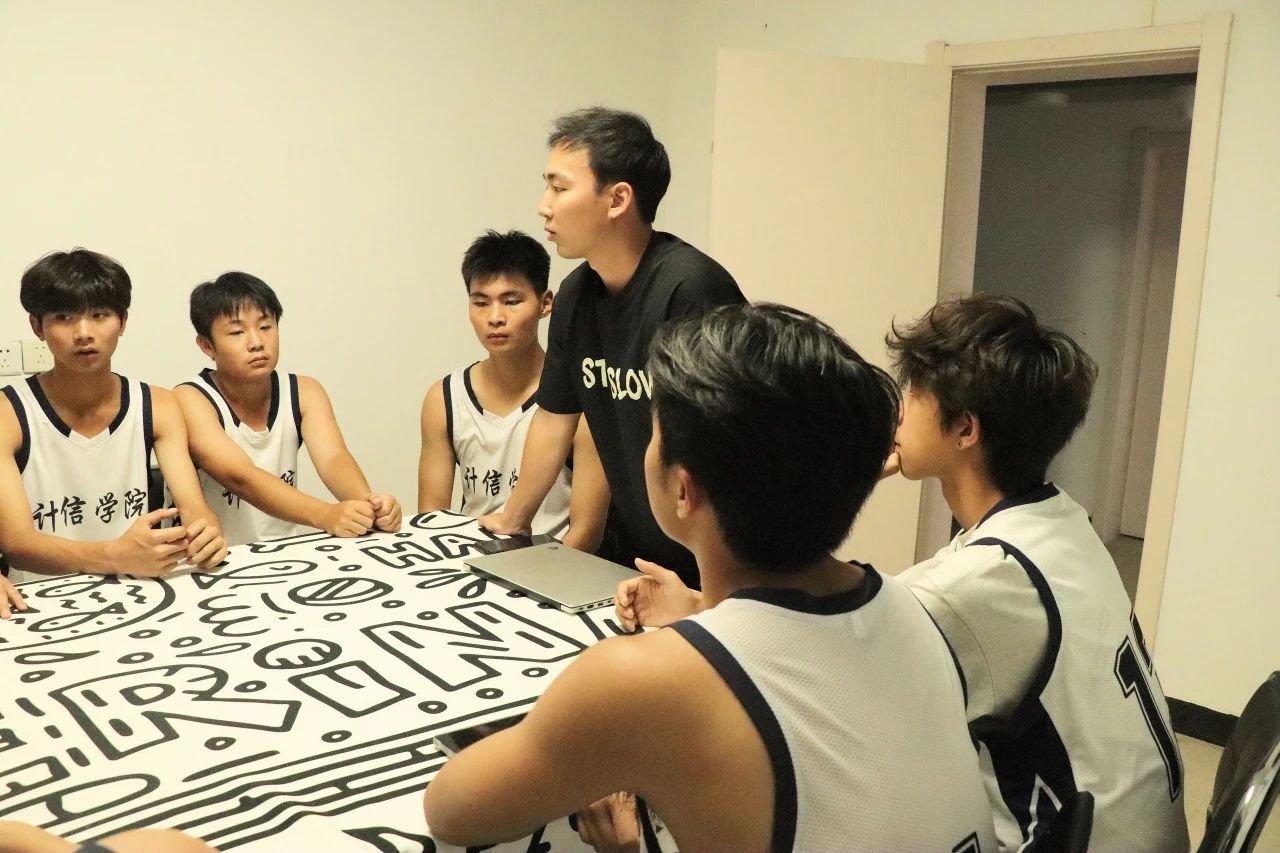 一站式社区作为学院与学生的桥梁,不仅丰富了活动空间,还成为篮球队备战的重要场所。赛前,计算机与电子信息工程学院的篮球队学生负责人在一站式社区与新生球员们共同商讨战术布局,球员们彼此间的默契与合作在热烈讨论中不断深化,为比赛做好了充分准备。
