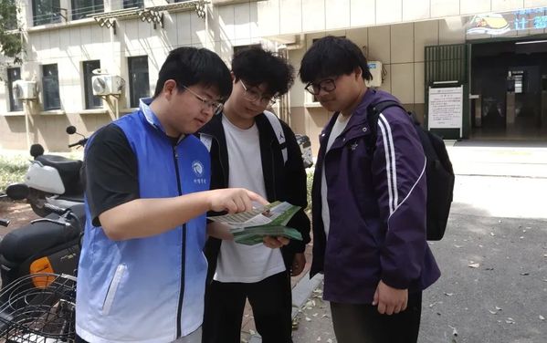 “匠星”志愿者们分别在“计馨”社区八栋和十四栋楼下向同学们发放关于预防肺结核的传单,同时,为同学们讲解肺结核的常见症状,如咳嗽、咳痰、低热、盗汗等,并强调出现这些症状应当及时就医检查。