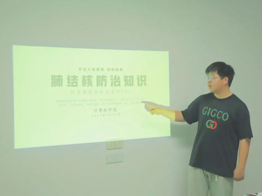 在“计馨”社区活动室,“匠星”志愿者通过PPT为大家深入讲解肺结核防治知识,普及了关于诊断治疗以及预防方法方面的知识。重点强调了保持良好卫生习惯的重要性,如勤洗手、多通风、不随地吐痰,并倡导同学们加强体育锻炼,增强自身免疫力,以科学的方式预防肺结核。