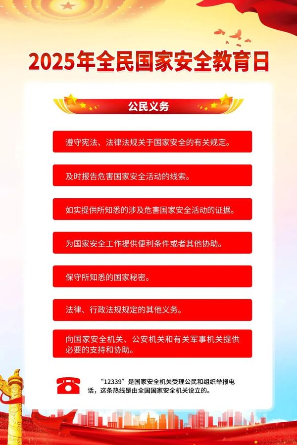 在全民国家安全教育日这个特殊的日子里,我们不仅要了解国家安全的相关知识,更要将这些知识转化为实际行动,为维护国家安全贡献自己的力量。以下是我们应做到的几点: