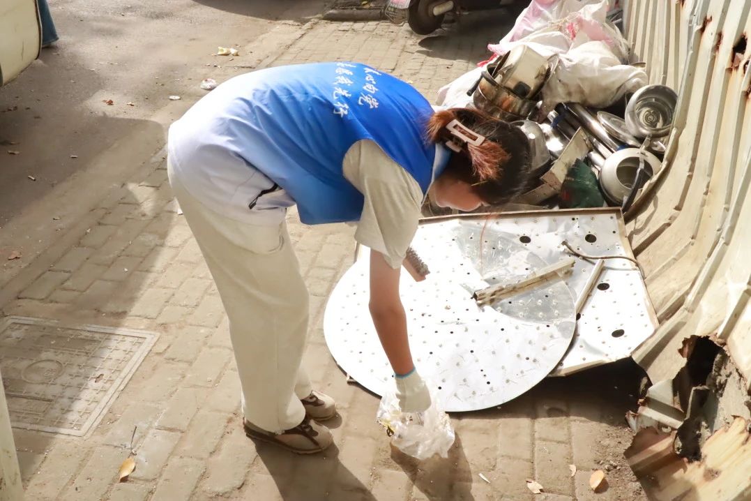 “匠星”志愿者们手持垃圾袋和夹子,细心地在社区的每个角落搜寻垃圾,无论是草丛中的塑料瓶,还是路边的纸屑,都被他们一一捡起。