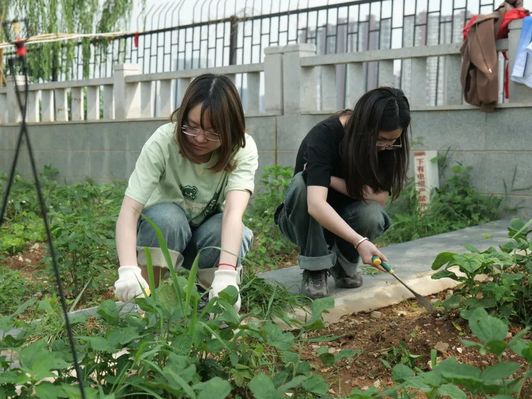 5月9日下午,阳光洒满 “匠星” 小地,师生们手持锄头,弯腰除草,为蔬菜腾出生长空间。