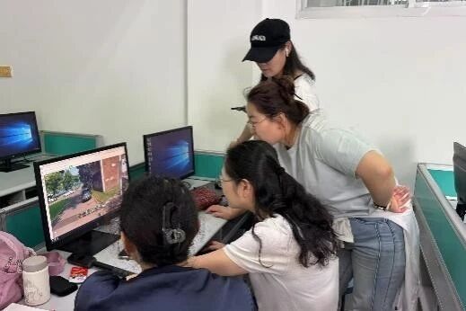 拍摄结束后,学员们带着自己的“成果”回到教室,在鲁老师的讲解和指导下,将处理好的全景照片上传至指定平台,并学会生成一个具有交互特性的全景漫游作品。学员们在完成作品后通过分享链接发布到媒体平台,开心地表示非常有成就感。