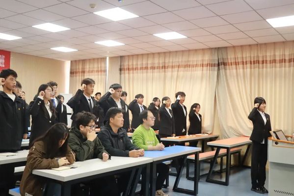 仪式在庄严的团歌声中拉开帷幕,全体团员肃立齐唱,展现了昂扬向上的精神风貌。随后,计算机学院周茜同学带领全体团员重温入团誓词,铿锵有力的誓言回荡在会场,彰显了团员们坚定的理想信念和奋斗决心。