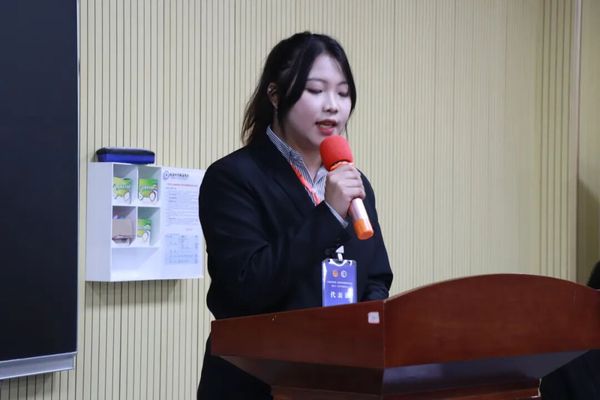 会议进入学代会部分,院学生会主席孙金陶同学代表第十二任学生会委员会作工作报告,回顾总结了过往一年的工作历程与成果。她表示学生会始终以服务同学为初心,积极筹办并成功举行各类活动比赛,切实践行了以赛促学、以学促德的育人理念。在总结成绩的同时,报告也客观剖析了当前工作中存在的不足,并针对性地提出了改进方向与具体措施。
