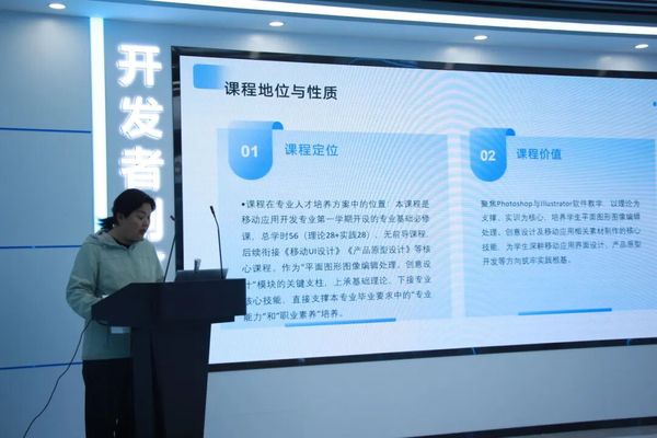 随后,由校内外专家共同组成的评委团,从课程设计的科学性、教学实施的可行性、创新举措的实效性等多维度进行了严谨的评审。评委们对每位教师的展示给予了精准的点评与中肯的建议,助力教师进一步明晰课程优化的方向。